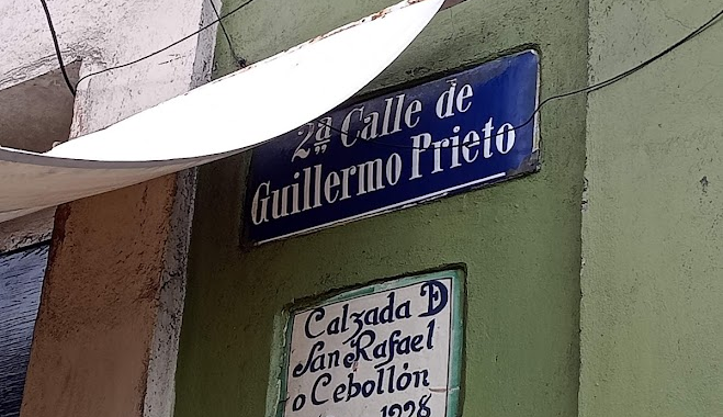 Imagen 3. Letrero marcando la ‘’Calzada de San Rafael o Cebollón, es conservado en la actualidad y está ubicado en la Calle de Guillermo Prieto.